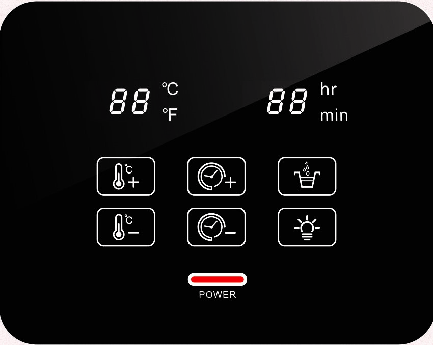 Soft touch electronic digital keypad allows for time/temperature settings, activates light and has LED display