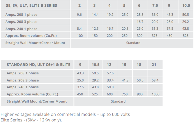 Divide the CUBIC FOOTAGE BY 50 = Kilowatts Required